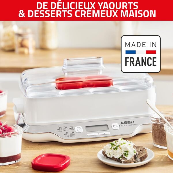 • Seb Yaourtière 6 pots verre 140 ml, 5 programmes automatiques, Sans BPA, Compact, Yaourt maison, Desserts lactés, Fromages blancs, Fabriqué en France, Multidélices Express, Rouge YG660100